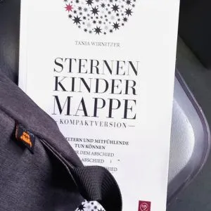 In diesem Paket waren nicht nur die Kurzversion der Sternenkindermappe (in 2 unterschiedlichen Ausführungen), ein Stift, die wunderschön gestalteten Karten, bei deren Entstehung sie ihre Instagram-Community teilhaben ließ, sondern auch ein kleines Büchlein mit dem Titel „Schimmer wirken Sternenkind: Mit Schimmern zu mehr Blickwinkeln und Balance“.